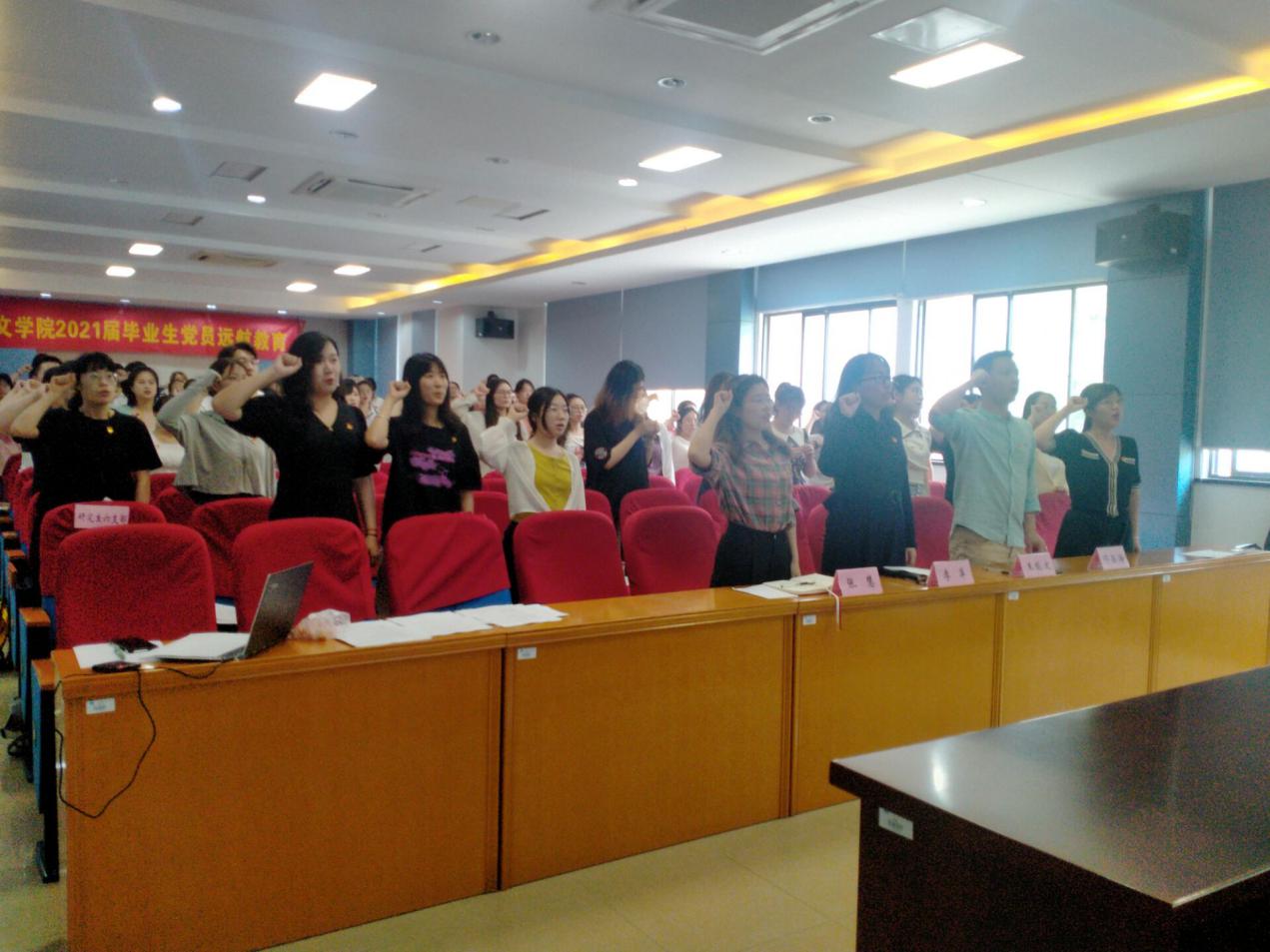 随后,在毕业生党员代表张朝旭、侯文雯的领学下,全体毕业生党员认真学习并签署了《毕业生党员须知》、《文明离校承诺书》。接着,分团委书记赵丽敏就毕业生党员组织关系转接的具体事宜做了专题讲解。最后,学院党委副书记、副院长李萍为毕业生上了最后一次党课。先是观看了由学院党委组织拍摄的党课专题片《徐暐先生》,李书记分别从入党初心、乐学向善、感恩母校三个方面为大家上了一堂生动的党课,并寄语党员们:希望毕业生党员们走上工作岗位后,继续以党员的标准严格要求自己,能够时刻谨记习近平总书记对青年人的希望“立大志、明大德、成大才、担大任,”努力成为堪当民族复兴重任的时代新人,让青春在为祖国、为民族、为人民、为人类的不懈奋斗中绽放绚丽之花。