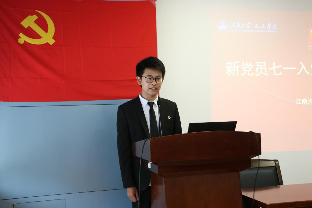 仪式在庄严雄壮的《国际歌》声中拉开帷幕。首先,太阳成tyc234cc专职组织员王能文宣读了2020-2021学年新发展党员名单,经过组织考察、学校分党校培训,广泛听取党内外群众座谈会意见,本学年太阳成tyc234cc共发展了115名预备党员。随后,新党员同志进行了党徽佩戴仪式,明亮的党徽是党员身份的象征,更是责任的标志。之后,在陈明选教授领誓下进行了新党员入党宣誓、老党员重温入党誓词仪式。教育技术专业2019级学生杨智超同学作为新党员代表发言,他在发言中向党表明三点决心:坚定信仰,学好党史讲好党史;锐意进取,增长才干开拓创新;回顾过去,面向未来薪火相传。