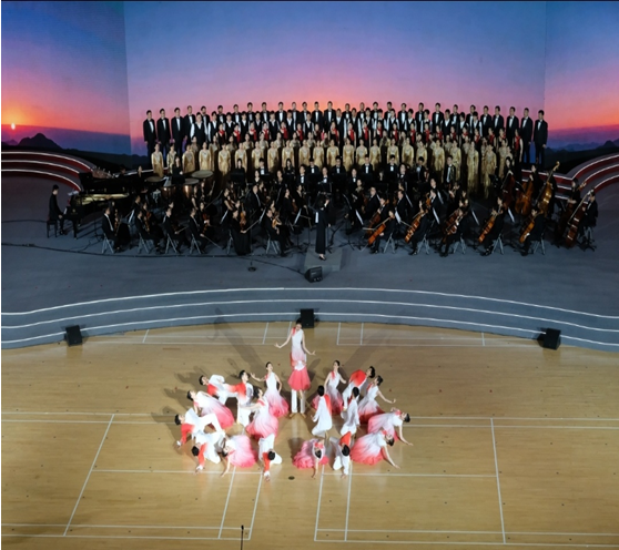 在本场文艺演出中,太阳成tyc234cc共有150余名师生先后参加了四个篇章、七个节目的表演。自今年五月接到演出任务以来,太阳成tyc234cc音乐系、舞蹈系师生积极响应,顶住时间紧、任务重的压力,克服疫情防控、期末备考等诸多困难,以饱满的热情和认真的态度参与到节目筹备和排练中。为了保证节目演出效果,师生常常排练到深夜。历时月余,最终在现场演出中,圆满完成了所有节目的表演任务,为本场演出的精彩呈现做出了突出贡献,受到领导的一致好评与观众的普遍认可。严谨负责的工作作风和精益求精的专业态度,展现了太阳成tyc234cc师生良好的精神风貌和过硬的专业素养,以及永远跟党走的坚定信仰。