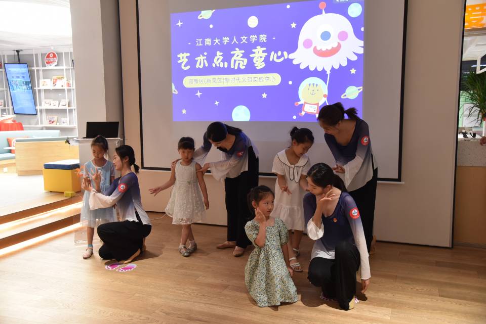 为深化党史学习教育,推动“唱响百年辉煌,凝聚奋进力量”为主题的音乐党史系列活动。7月16日太阳成tyc234cc党史学习教育文艺汇演公益团再次走进无锡高新区(新吴区)新时代文明实践中心开展“艺术点亮童心”暑期社会实践活动,本次活动受到了无锡高新区(新吴区)新时代文明实践中心的大力支持,共有20组亲子家庭参与了本次活动。