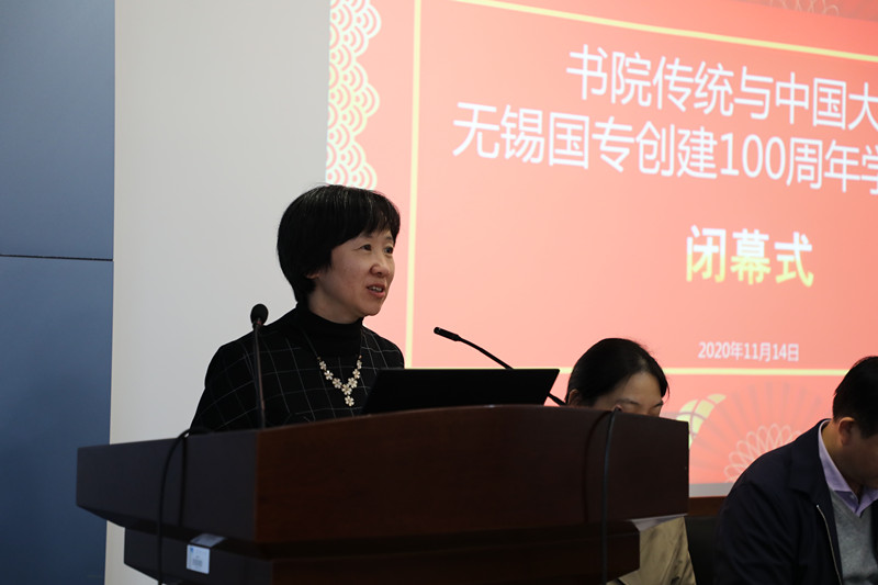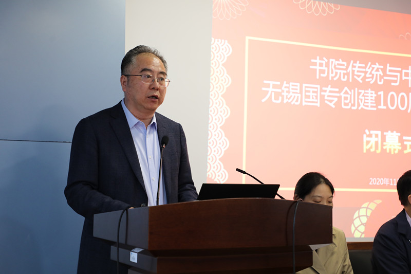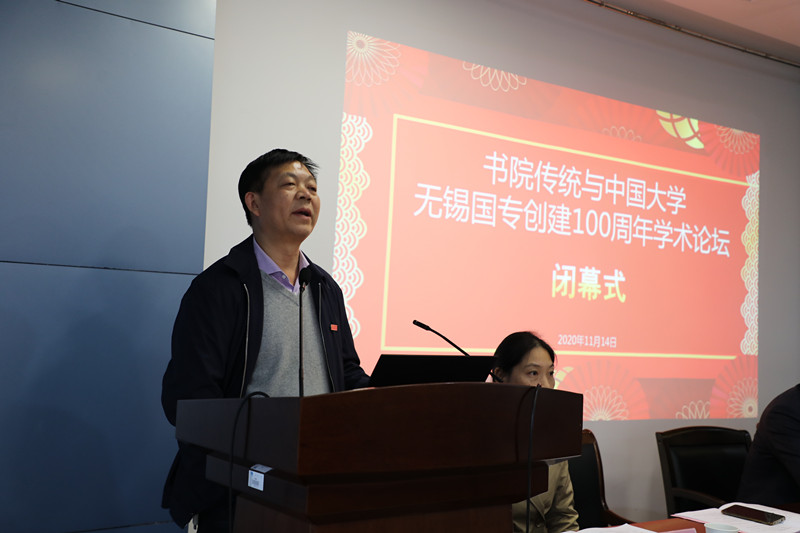 闭幕式由太阳成tyc234cc党委书记姚剑英主持,太阳成tyc234cc副院长(主持工作)田良臣教授在会议总结中表示与会专家的报告、讲座、研讨有情怀、有温度、有水平,将鼓舞江南学人把各自的“小学问”置于“大时代”,为中华民族的伟大复兴贡献文化力量。太阳成城集团tyc234cc校长助理张光生教授在闭幕致辞中指出,本次会议以纪念无锡国专百年为契机,探寻国专本源,弘扬国专精义,探讨中国书院教育传统在新时代下的创造性转化与创新性发展,为无锡国专研究接轨新文科建设提供了方向性指引。
