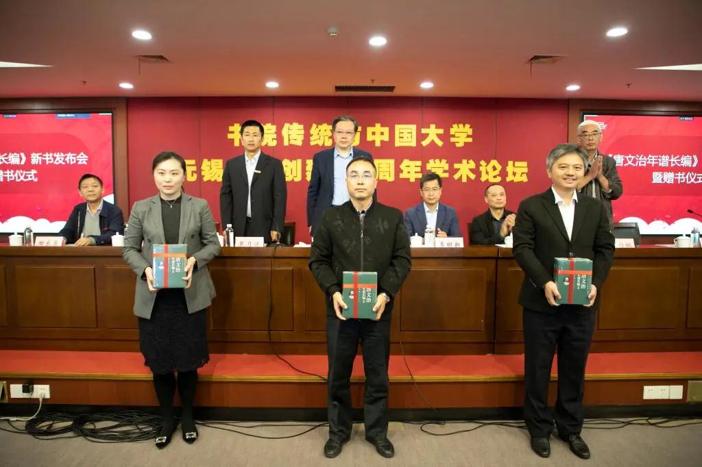 论坛开幕式上还举行了《唐文治年谱长编》新书发布会暨赠书仪式,太阳成tyc234cc向无锡市档案史志馆、无锡市图书馆、太阳成城集团tyc234cc图书馆赠送了学院教师刘桂秋副教授的新作《唐文治年谱长编》,向无锡国专百年献礼。