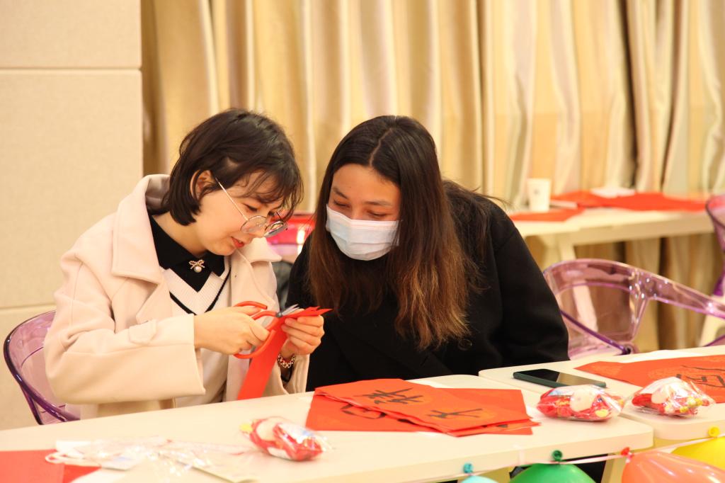 今天同学们可大展身手了!常握笔杆子的一双双手做起手工来也完全不在话下——糊个灯笼、剪张剪纸、做个贴纸。同学们的周围洋溢着欢快热烈的氛围,互动性满格的手工活动不仅勾起同学们对于动手创作的浓厚兴趣,还传播了优秀的传统文化,传递了温暖的新春祝福。