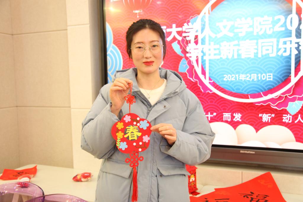 虽然本无意于此,但十分幸运地在活动中获得一等奖,确实让我很惊喜。由于疫情原因留校和同学们一起在学校过年,感觉别有风味,写春联、听歌识曲等活动将温馨传递给了每一个同学。由衷地感谢老师们以及各位负责人的辛苦付出,在特殊时期,祝你们身体健康,工作顺利。