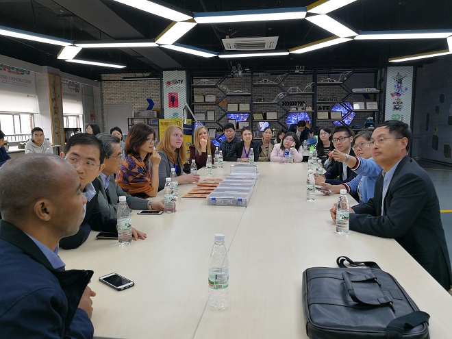 在无锡市第一中学,代表团一行人现场观摩了彰显现代化技术的特色课堂“创客空间”,深刻体验了“互联网+时代”背景下人工智能对基础教育的深刻影响,感受到了中国现代化背景下的中学课堂魅力。在参观国学文化馆的同时围绕教师专业发展、学生培养模式等问题展开深入探讨,提出中美双方应该相互借鉴,彼此倾听两国基础教育的声音,取得丰硕成果。