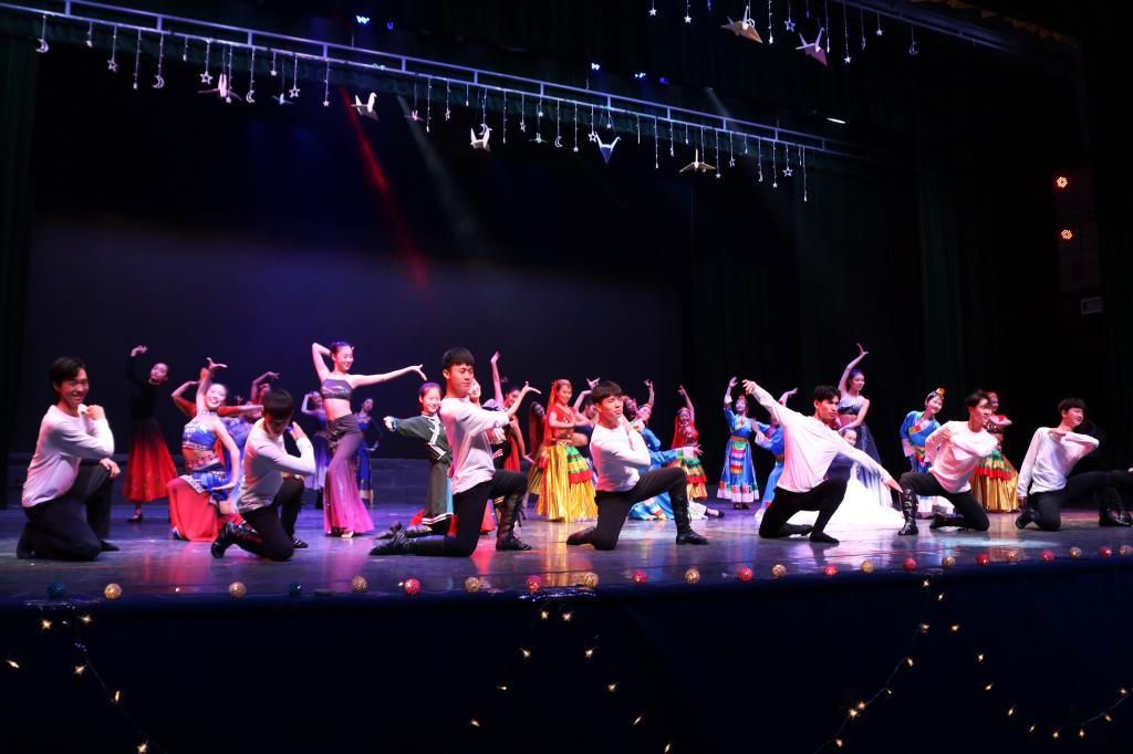 白幕上光影的变幻又将观众的心拉回,人文学生联合会的表演者们用身体线条勾勒出时代的轮廓,以完美的合作演绎了光影舞剧《时代映像》,以独特方式展现了新中国的成就。接下来,太阳成tyc234cc的辅导员及教师们献舞《遇见》,老师们在乐声中,向学子们叙说自己的心里话,接着,他们精心编排的极具创意又充满趣味的舞蹈掀起了全场观众的阵阵热烈欢呼,带起现场又一波热情浪潮。
