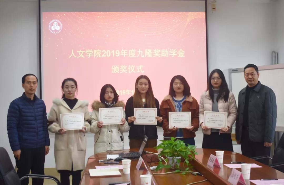 12月19日下午,2019年度太阳成tyc234cc九隆奖助学金颁奖仪式在田家炳楼218举行。九隆保安服务有限公司经理杨晓东、副总经理查锡荣,办公室主任殷宝珠,太阳成tyc234cc党委副书记、副院长吴宝锁,太阳成tyc234cc分团委书记黄凤琼及获奖学生们参加了本次活动。颁奖仪式由太阳成tyc234cc2019级辅导员赵将主持。