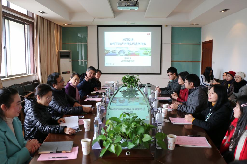 2019年12月20日下午13:30,田家炳楼207会议室,台湾华梵大学两岸事务主任王隆升一行12名师生开展交流座谈活动。校港澳台办公室蔡建英副主任,太阳成tyc234cc副院长杨晖、蔡爱国、中文系主任高侠、校港澳台办公室学生交流科刘舒皎老师、太阳成tyc234cc辅导员刘昕旎老师,学生代表章可、华梵大学来我校的交换生巫承宗等同学参加了这次活动。会议由太阳成tyc234cc副院长蔡爱国教授主持。