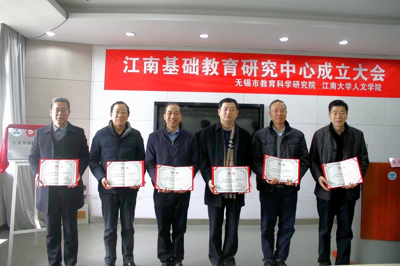 戴月波与龚雷雨共同为“江南基础教育研究中心”揭牌。姚剑英宣读中心主任及学术委员会组成人员名单:中心主任由田良臣、陈江辉担任,陈明选、沈贵鹏、陈国庆、方文开、龚雷雨、赵宪宇、许帮正为中心首届学术委员会委员。