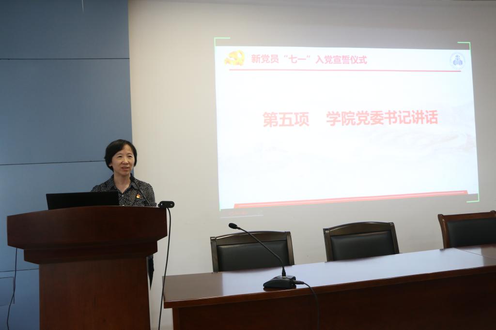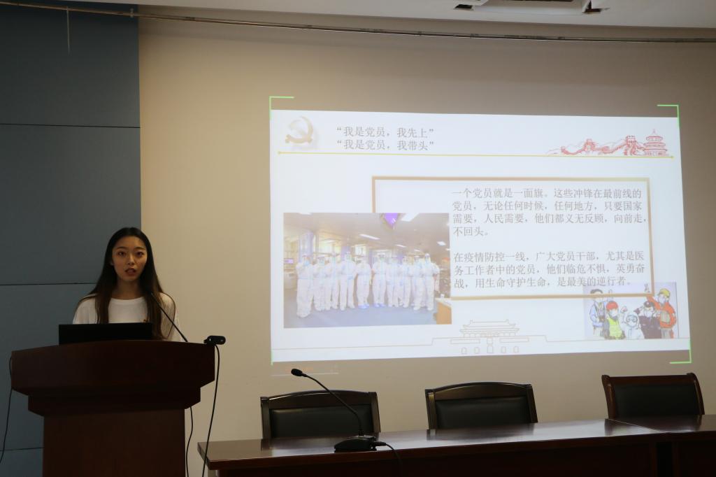 首先,会场奏响《国际歌》,全体参会人起立,齐唱歌曲。接着,学院院党委副书记、副院长吴宝锁带领全体预备党员宣誓,大家庄严肃立,举起右手,面对党旗郑重起誓,声音洪亮。而后,预备党员佩戴党员徽章,将对党的崇敬与热爱牢记于心。今年疫情期间,太阳成tyc234cc青年党员主动担当,奉献在抗击疫情的第一线。接着,优秀抗疫志愿者代表费诗然、陈金艳陆续分享了自己的抗疫故事,她们深刻体会到党员在抗击疫情中冲锋在前的义无反顾与责任担当。深受感动的同时,更主动参与到自己社区的抗疫志愿活动中,进行测量体温、宣传抗疫知识等工作,践行“从群众中来 到群众中去”,以服务诠释职责。
