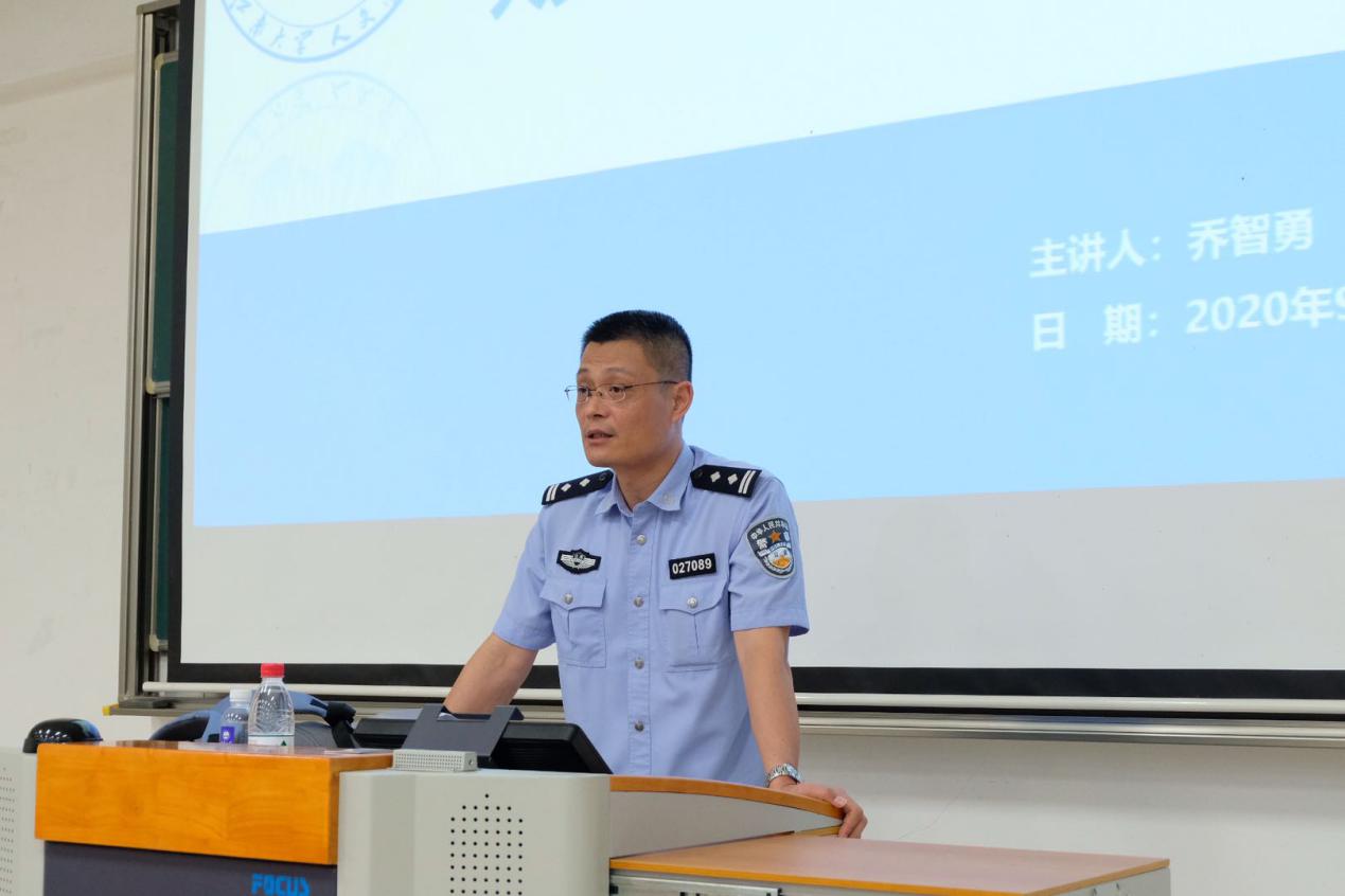 乔智勇警官结合具体案例,告诫新生要牢固树立“安全第一”的观念,懂得辨别是非。通过大学生沉迷游戏被不法分子以“游戏充值”的名义诈骗上万财产,以及在没有详细了解对方身份的情况下盲目“约见网友”而误入传销组织等真实生动的案例,告诫新同学加强自我防范意识,注意保护人身和财产安全。