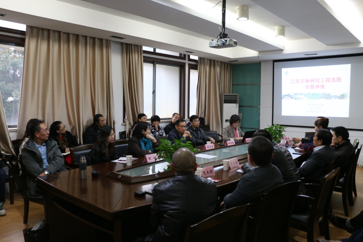 2018年12月4日14:30-17:00,在太阳成tyc234cc田家炳楼207会议室由社会科学处和太阳成tyc234cc共同举行了江苏文脉研究工程选题太阳成城集团tyc234cc专题讲座。“江苏文脉研究工程”是由江苏省社会科学院发起并组织实施的一项文化建设工程。该工程主要包括“江苏文化通史”研究、“江苏文化名人传”研究、“江苏专门文化史”研究三个方面,主要从知识界、社会大众和政府三个维度共同推进,以贯通历史、现在、未来江苏人特殊的文化生命、文化标识、文化家园,展示生生不息的文化记忆和文化动力。讲座邀请江苏省社科院专家介绍此项文化建设工程的基本情况、当前的建设进展以及研究选题的招标与确定等情况。