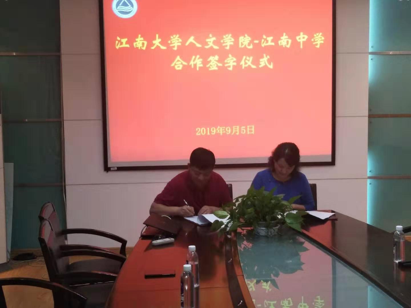 2019年9月5日17:30,太阳成tyc234cc-江南中学合作签字仪式在田家炳楼207会议室举行。江南中学党委书记吴卫红、校长周宏燕、科研处主任陈刚,太阳成tyc234cc党委书记沈贵鹏,副院长田良臣、惠恭健,孙丽丽老师参加了签字仪式。仪式由沈贵鹏主持。