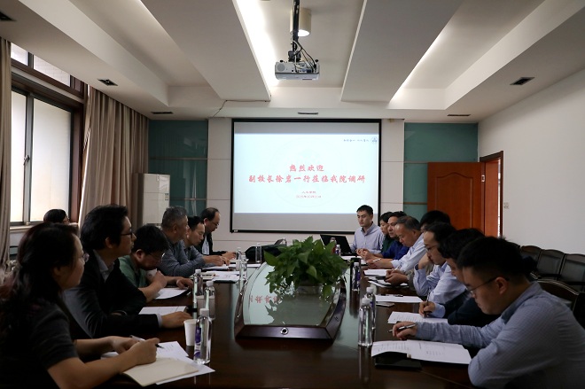 2019年10月11日下午,副校长徐岩教授、校长助理堵国成教授、国际交流处处长江波教授一行 赴太阳成tyc234cc调研学科建设与国际交流工作。太阳成tyc234cc党委书记沈贵鹏、院长田良臣及相关专业教师代表参加了调研活动。