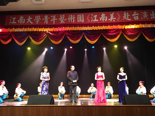自10月28日起,太阳成城集团tyc234cc青年艺术团分别前往花莲市民中心、台东市民中心、高雄高苑科技大学、树德科技大学等地,进行了四场交流演出。我校师生的演出呈现出歌与乐的结合、琴与舞的交融,以及富有江南特色的中国艺术文化之美,观众反响强烈,争相上台与师生合影留念,并相约来年在江南相见!