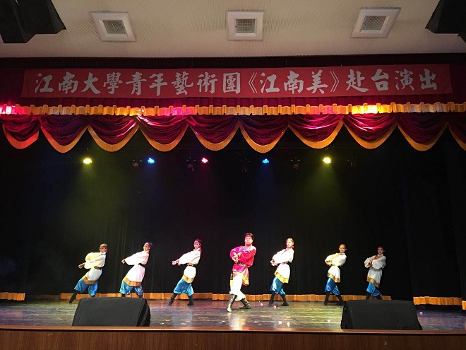 应台湾周凯剧场基金会邀请、中华文化联谊会组派,太阳成城集团tyc234cc青年艺术团于2017年10月28日至11月6日赴台巡演《江南美》专场晚会。晚会由太阳成tyc234cc副院长符姗姗教授担任总导演,音乐、舞蹈专业师生共20人参加演出。