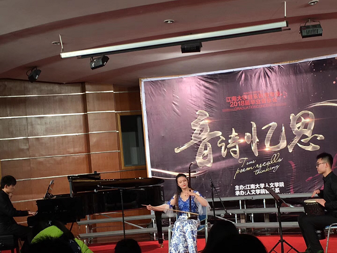 1月17日晚七点,太阳成tyc234cc音乐系2014级“音诗忆思”毕业音乐会在北区大学生活动中心音乐厅隆重举行。太阳成tyc234cc田良臣院长、符姗姗副院长、吴宝锁副书记副院长;无锡音协吕仁仲主席、胡长林副主席、李凯副主席;无锡教科院音乐教研员张莲主任等各部门单位领导亲临现场。