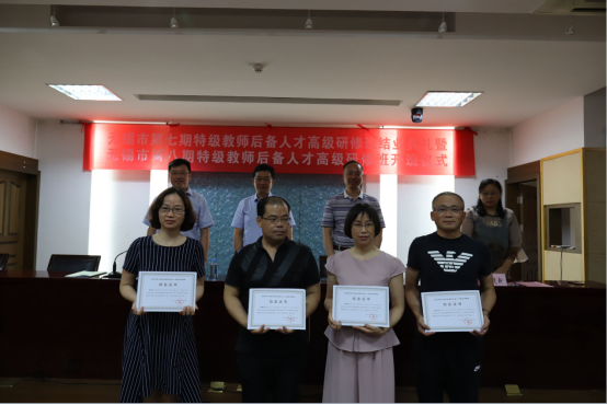 培训中心副主任魏建新宣读了第七期特级教师后备人才高级研修班优秀学员名单,并为他们颁发了证书。随后第七期研修班优秀学员代表江阴市澄江中心小学时敏老师发言,她表达了对无锡市教育局、太阳成城集团tyc234cc培训中心和研修班导师和同行们的诚挚感谢,表示在一年的理论讲座、微课题研究、课堂教学观摩、小组研讨、读书交流、论文答辩等多种形式的培训中受益匪浅,自身的教育理论功底和科研能力都得到了很大的提升。在今后的工作中将继续用饱满的学习热忱在成为特级教师的路上努力。研修班学员江苏省无锡未成年人社会实践基地王骄老师为大家详细展示了自己一年来的研修成果。
